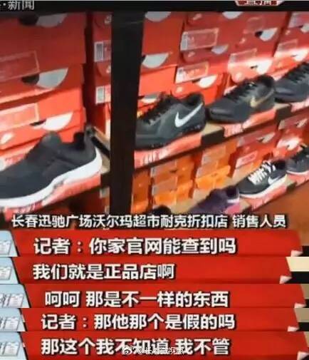 不止在长春迅驰广场沃尔玛超市里面有耐克店出售产品,在长春很多家沃尔玛超市里都要耐克的打折店,记者也按照消费者提醒的线索逐一调查。
