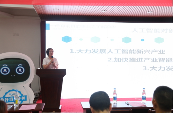 最后,荣事达荣电集团产品讲师陈梦婷带来机器人产品发布。陈梦婷分析了当下人工智能的前景,从材质、内容、功能、体验感、售后等等方面介绍了好帅机器人的优势,并介绍了好帅机器人的定制功能,与会人员对机器人表示了浓厚的兴趣。