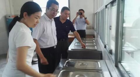 凉水口镇距离桑植县城驾车需要两个多小时,期间山路崎岖,申局长一行专程前往凉水口镇中心小学,考察学校的厨房建设工作。九阳股份有限公司董秘、副总裁韩润女士向申局长汇报了九阳在桑植的扶贫工作。九阳股份在中国青基会设立5000万九阳希望基金,通过为学校援建标准化、电气化、现代化的厨房设备,解决学校工人做饭难,效率低、不卫生等老大难问题,为学生提供一个环保卫生的就餐环境,通过一碗热饭,一杯热水,一杯热豆浆,改善学生的营养状况,增强学生体质,少年强,则国强。