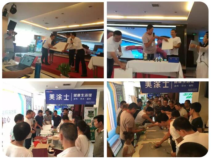 ▲南京招商会现场,美涂士产品抗甲醛、耐擦洗能力测试,性能强大,吸引客户围观并亲自动手实验!