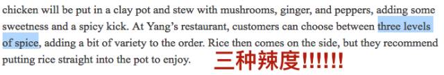 洛杉矶的美食网站还特别介绍:黄焖鸡米饭有微辣、中辣、特辣三种辣度可供选择,米饭会单独盛出来放在旁边,但是推荐你直接把饭扣到菜里吃。