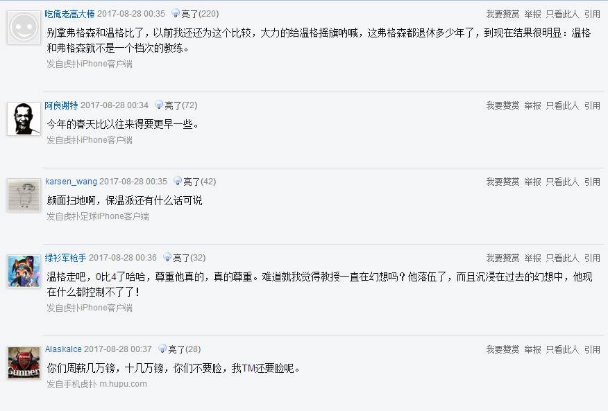 有人猜测可能是温格和高层产生了矛盾,但是不管怎样,赛季伊始就遭遇溃败,球员离队传闻纷飞,球迷高举的“wenger out”的标语可能很快就要实现了......