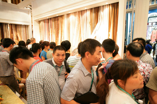 展会现场,其中,广东著名布艺品牌摩力克、新东兴、金华、新华隆、欧博莱、特耐、君采、欧丰名、新大宏、东誉、千百意、维泰斯、风格贰仟、伊莎莱、明佳等将隆重亮相;浙江著名品牌柯力达、华欣、汉帛、锦秀东方、伊伊布舍、香港本色、雕刻空间、三和、嘉城、千百荟等也将震撼登场;由华俊行、朗盛国际、依曼琪、丰业、韩国东帝、The Park、诺维雅、凯代可等组成的进口专区历来备受瞩目,而雅兰、法兰蒂诺、齐格、奥雅等创新型企业的集体崛起也让成品化艺术软包风潮越刮越烈,家居饰品品牌如大名堂、令高、梵尼诗、君豪、美雅嘉琦、雷峰村、敦悦等将盛情赴会,遮阳品牌如金富源、杜亚、菲力特、索耐斯(立嘉)等品牌也将悉数出席,以全新的创意,时尚的设计,独特的品位、新颖的形式傲立潮头,吸引家居众多专业观众“追星式”观摩交流。高会长在也在会上向众企业号召,在响应习近平总书记提出的“中国梦”伟大理想,家纺行业也要营造家纺人的家纺梦,争当中国梦的实践者和创造者,为中国梦添砖加瓦。