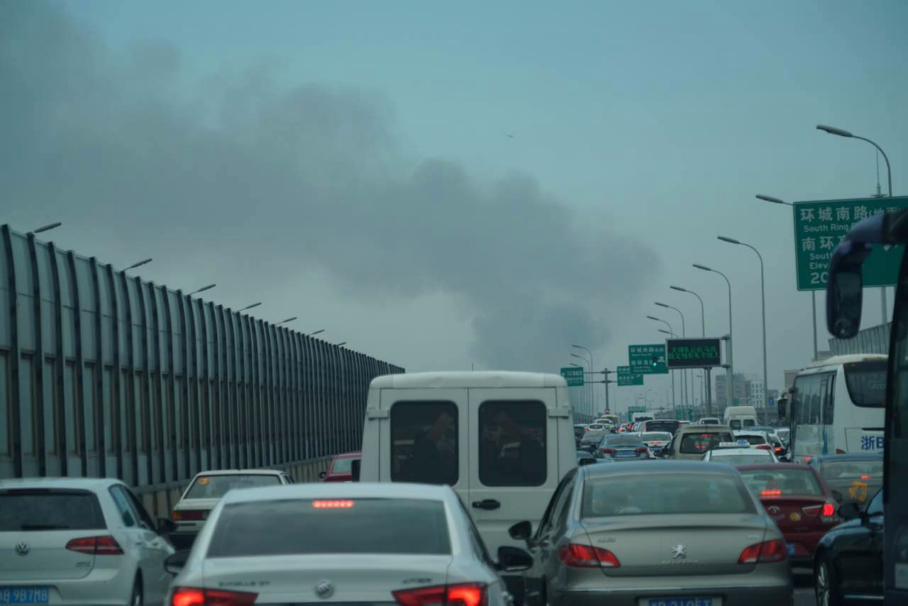 今天上午7点多,有多位网友报料,海曙段塘附近有地方着火。有网友车至宁波机场高架,见朝南方向冒出黑烟。