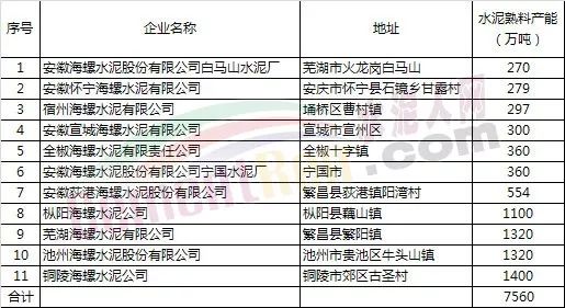 以上47家企业中有11家海螺水泥,产能份额约占安徽省熟料首批的52%以上。