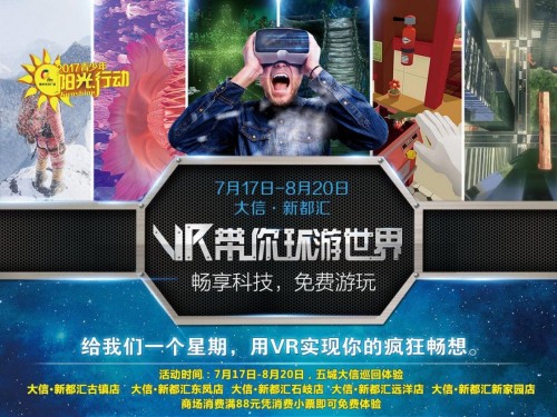 \u00A0 在这个暑假,大信·新都汇VR系列巡展也迎来最后一站,暑假也匆匆过去,何不趁假期正好,来大信·新都汇新家园店体验无限刺激的VR游戏呢?大信·新都汇VR系列巡展已经揭开最后一站——大信·新都汇新家园店VR免费体验活动,新老用户都可“转战”到大信·新都汇新家园店噢,在现场体验永无止境的VR世界吧!8月14日-8月20日我们将与大家不见不散!
