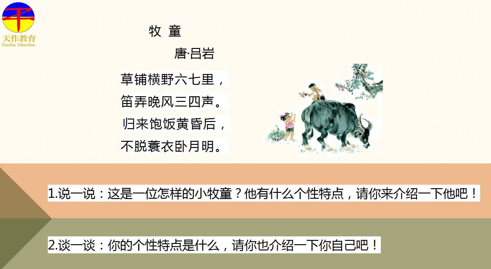 4.说一说:这是一位怎样的小牧童?他有什么个性特点?请你介绍一下他吧!