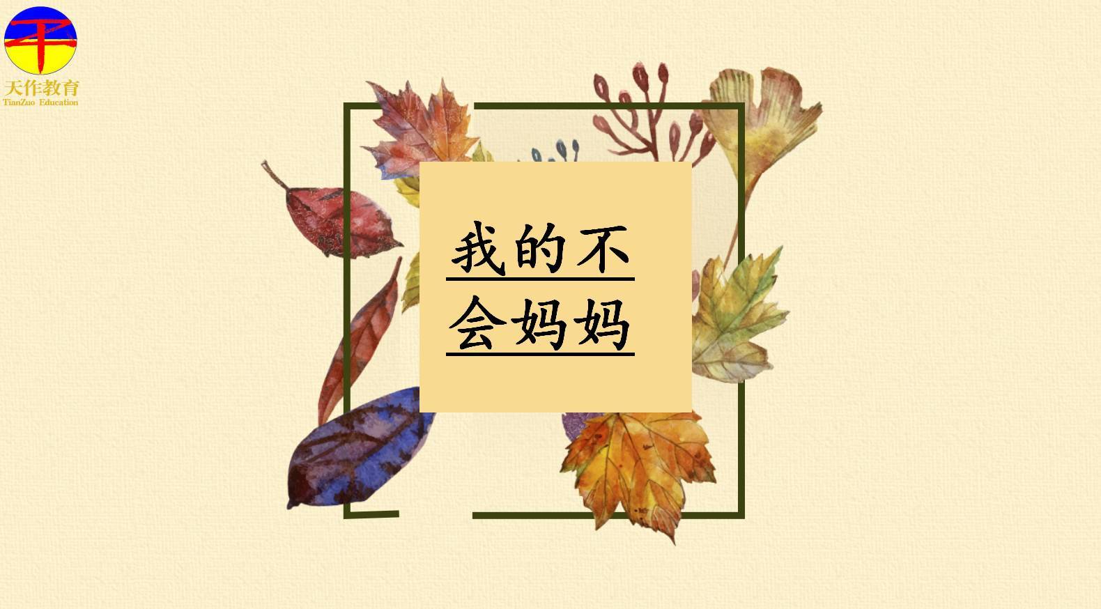 很多同学都说是自己的妈妈,如果让你来介绍你眼中的妈妈,你会怎么介绍呢?有一个小朋友是这样介绍的,请看——(播放短片:《我的不会妈妈》)