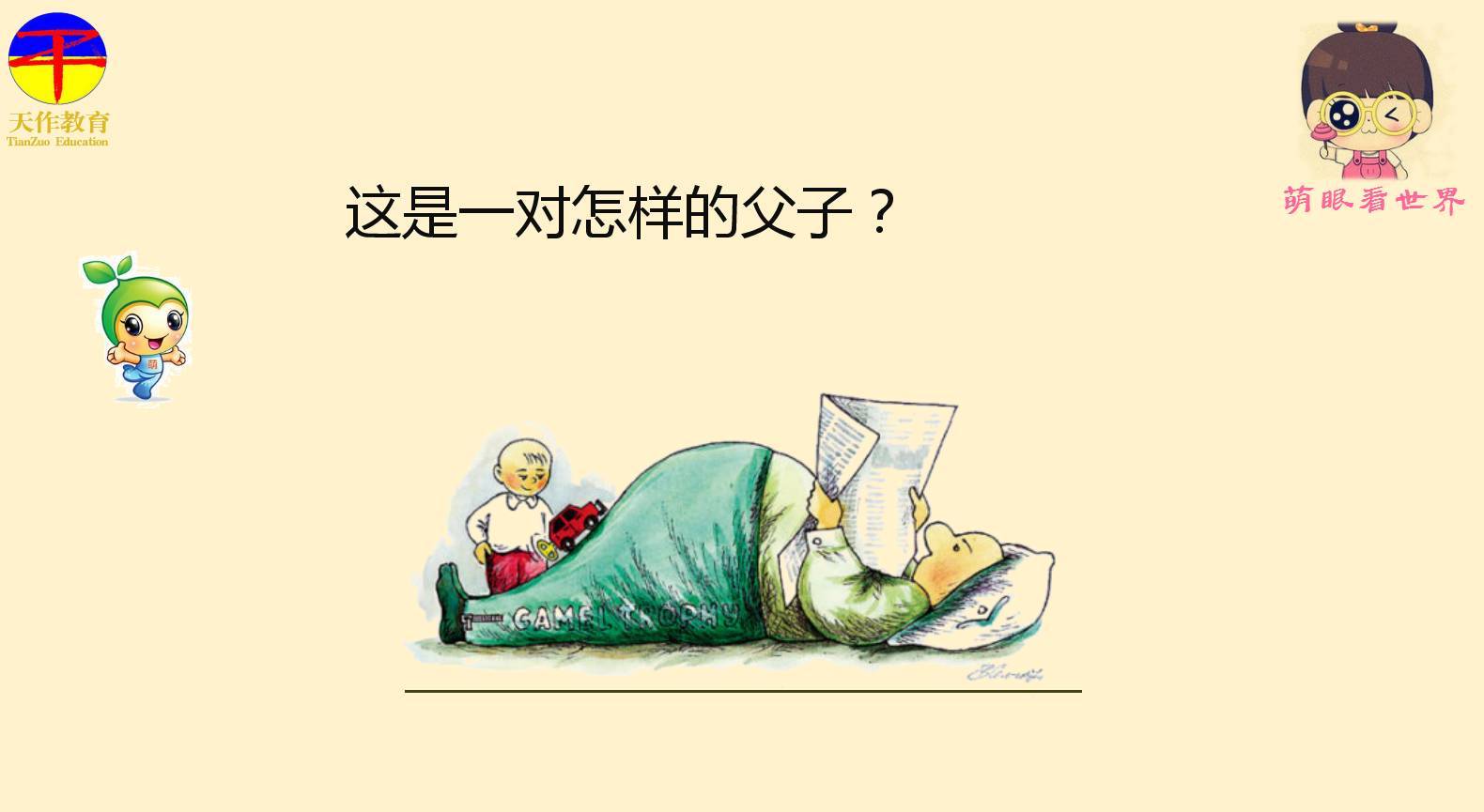 今天的课堂上有一位有趣的爸爸,为什么说他有趣呢?请大家看漫画。(PPT)