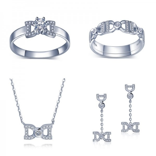 “I Do”系列将满载真诚的字母“Do”充分延展设计,字母“D”对称展现,中心以圆形主钻连接,巧妙呈现“O”字,好似爱侣双手紧密相执将一颗真心环抱,寓意牢不可破的誓言,亦灵动若蝴蝶结,增添活泼浪漫气息。