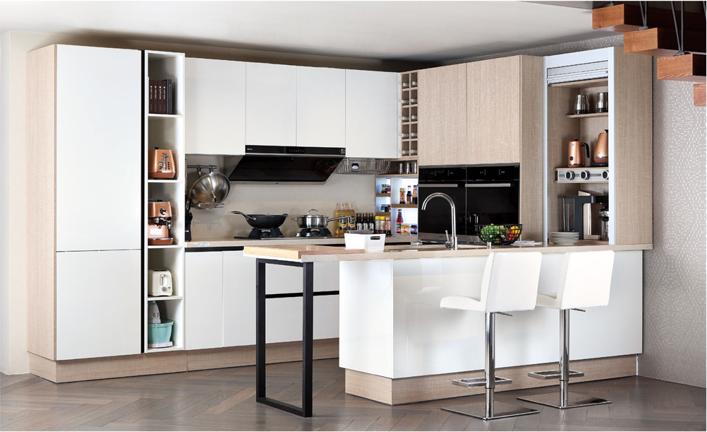 乐于入厨的生活总是充满阳光,可大大小小的家电、烹调工具数不胜数。即使只是一个小小的方正空间,强大超能的小U形布局与五大系统的合理设计也能给你一个想不到的解决方案。白色与木色的搭配清活悦目,马上开始在厨房大展身手吧。
