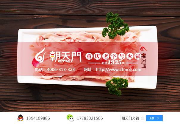 朝天门火锅,于1935年始创,由重庆长江、嘉陵江两江交汇处的朝天门码头源起,也因此得名,是重庆火锅代表之一。它以“诚信、严谨、优质、创新”的理念为经营总之,提倡“合理化、标准化、人性化”的管理原则以及“换位思考,契合需求”的服务理念,并在工作中加强学习、学习中不断深化、深化中努力创新,为投资者提供最坚实有力的保障体系,致力于创造重庆火锅行业里,最具有性价比的餐饮连锁品牌。同时,为想要开重庆火锅加盟店的创业投资者带来实现目标的可能性。