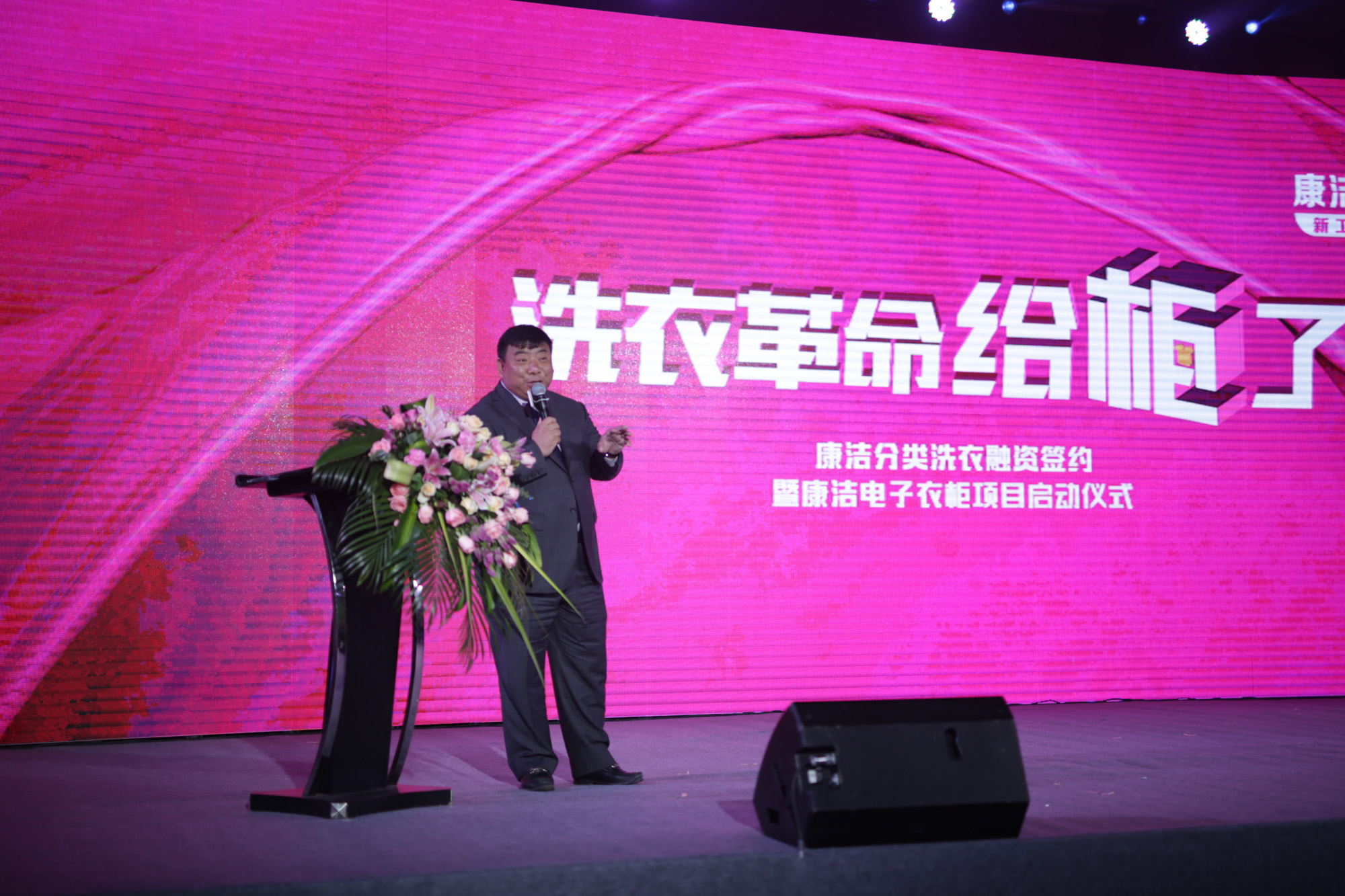 康洁分类洗衣董事长吉浦钧先生的现场致辞,朴素而深沉。他说,康洁分类洗衣推出的电子衣柜,改变的是洗衣习惯,是生活方式,是和互联网拥抱的最自然姿态。