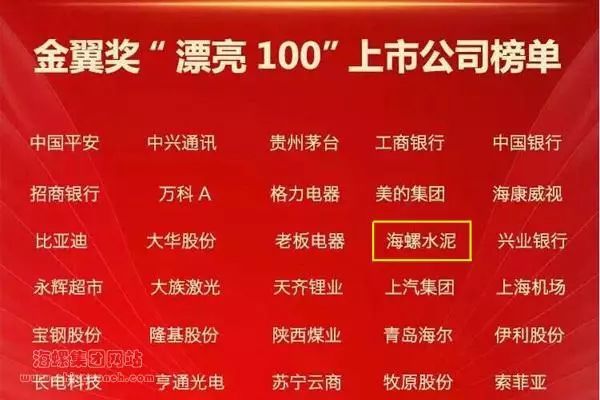 原标题:荣登双榜 再创辉煌丨海螺水泥入选“2017最具投资价值上市公司”和“金翼奖‘漂亮100’上市公司”榜单