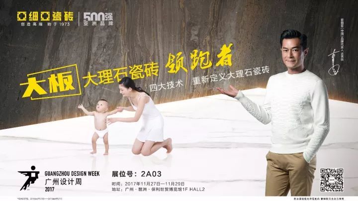 11月27-29日,2017广州设计周即将在琶洲·保利世贸博览馆盛大开展。亚细亚瓷砖也将携带2017年度明星产品,与五大主题展馆的10000+“设计+选材”精品同台争艳。最最最值得关注的是—— 55°柔光大板大理石瓷砖 即将在广州设计周惊艳亮相。2017年,「大板」相继在国内各大城市专卖店、展会、城市论坛登场,所到之处,目光所及,这款年度Super Icon即将燃爆广州。