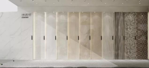 这幅由6 块900*1800mm 规格的“卡拉卡塔大花白”大板大理石瓷砖组成的一组巨幅连纹大板即将在亚细亚展厅惊艳亮相。花纹连续本就是大板的显著特征,这组大板更是将“连纹”演绎到淋漓尽致,堪比整块天然石材,虽由人作,宛若天成。