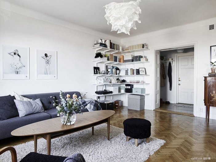 1.大白墙搭配暖色或深色地板,让空间不至于太冷清,弱化惨白的墙体作用。