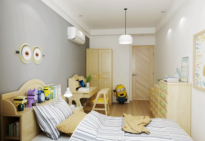 儿童房延续整屋的原木风格,童趣的贴纸和摆件的让它宣告:这是未来宝宝的专属空间。没有做定制家具,方便宝宝长大后,改变房间的用途或者格局。