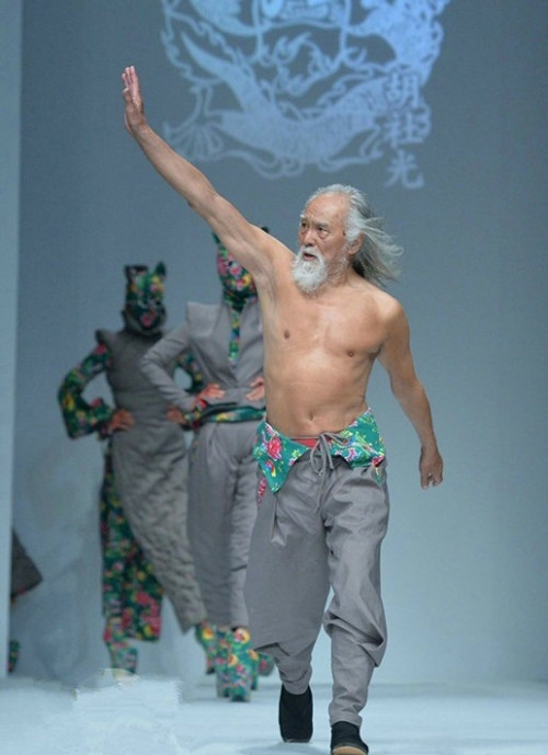 王德顺老爷子为中国国际时装周胡社光“东北大棉袄”发布会启幕\u00A0