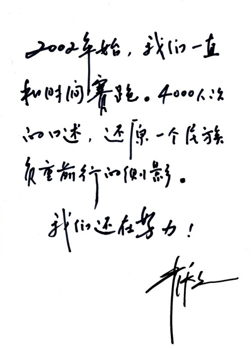 为未来记录过去——崔永元口述历史研究中心成立于2012年,从事口述史料的收集、整理和学术研究以及传播、交流。从2002年开始,崔永元口述历史团队就开始口述历史的工作,收集并整理完成了近4000人次、80万分钟的口述历史采访影像及大量相关视频、图文和实物资料,成为中国内容最丰富的口述历史库之一。