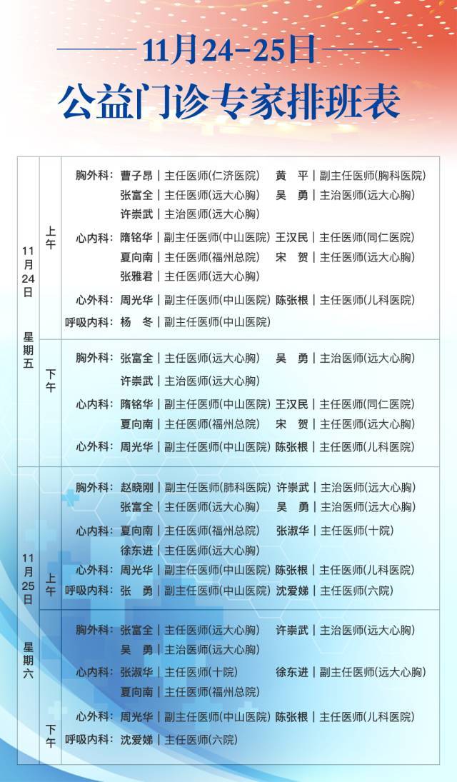 公益门诊时间:11.24~11.25(周五、周六)