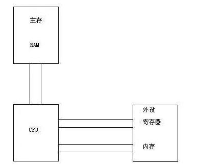 RISC指令系统的CPU(如,PowerPC、m68k、ARM等)通常只实现一个物理地址空间(RAM)。在这种情况下,外设I/O端口的物理地址就被映射到CPU的单一物理地址空间中,而成为内存的一部分。此时,CPU可以象访问一个内存单元那样访问外设I/O端口,而不需要设立专门的外设I/O指令。
