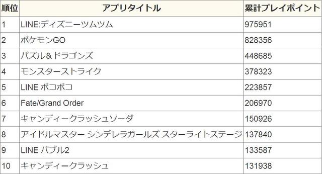 [摘要]Fami通评选2017年日本最受欢迎手游,《LINE:迪士尼消消看》、《精灵宝可梦Go》及《智龙迷城》位居前三甲。