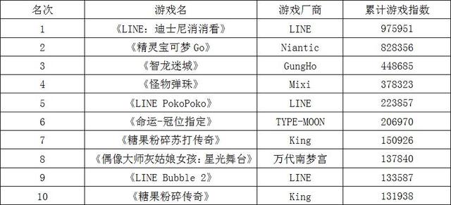 综合来看,Fami通今年评的日本最受欢迎手游榜与2016年的榜单相比没有太大出入,唯一一款新上榜的手游是Line的《LINE Bubble 2》。