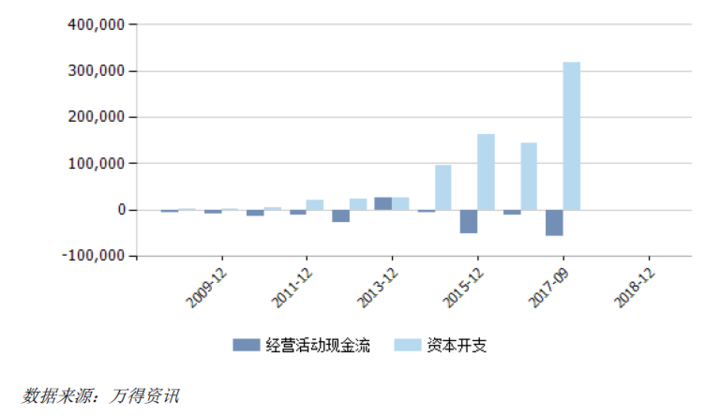 经营性现金流仅在2013年为流入,其它时间全部是负的,但反观资本开支,近今年创纪录了,说明啥?说明特斯拉在近4年依靠外部力量不断进行融资烧钱,维持公司发展,而且越烧越猛。