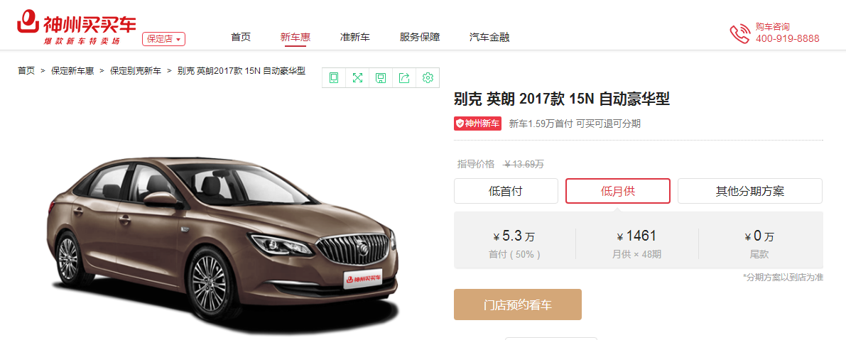 除了优质的车款和购车优惠外,神州买买车率先推出的“先享后买”消费模式,为消费者准备了多达十余种购车金融方案,具有首付自由、低月供、尾款灵活,可买可还的特点,很大程度地减轻了购车、还款压力,最大程度地降低了消费者的购车门槛。以英朗2017款15N自动豪华型为例,首付15%仅需1.6万元左右,36期月供每月低至2000元左右即可开走新车。给你充足的底气,迎接一个完整的新年。