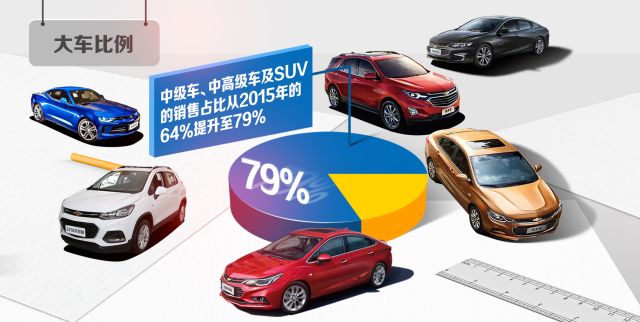 在探界者和“双迈”、“双科”的销量提振之下,雪佛兰品牌在华车型销售结构发生了质的变化:主力车型全部更新换代,中级车、中高级车及SUV的销售占比从2015年的64%提升至79%;雪佛兰车型平均售价从不到10万升至13.1万,增幅超过30%。这意味着雪佛兰的品牌提升在2017年有了好的开端,并从此奠定了良好的发展趋势,为市场占有率的进一步提升打下坚实的基础。