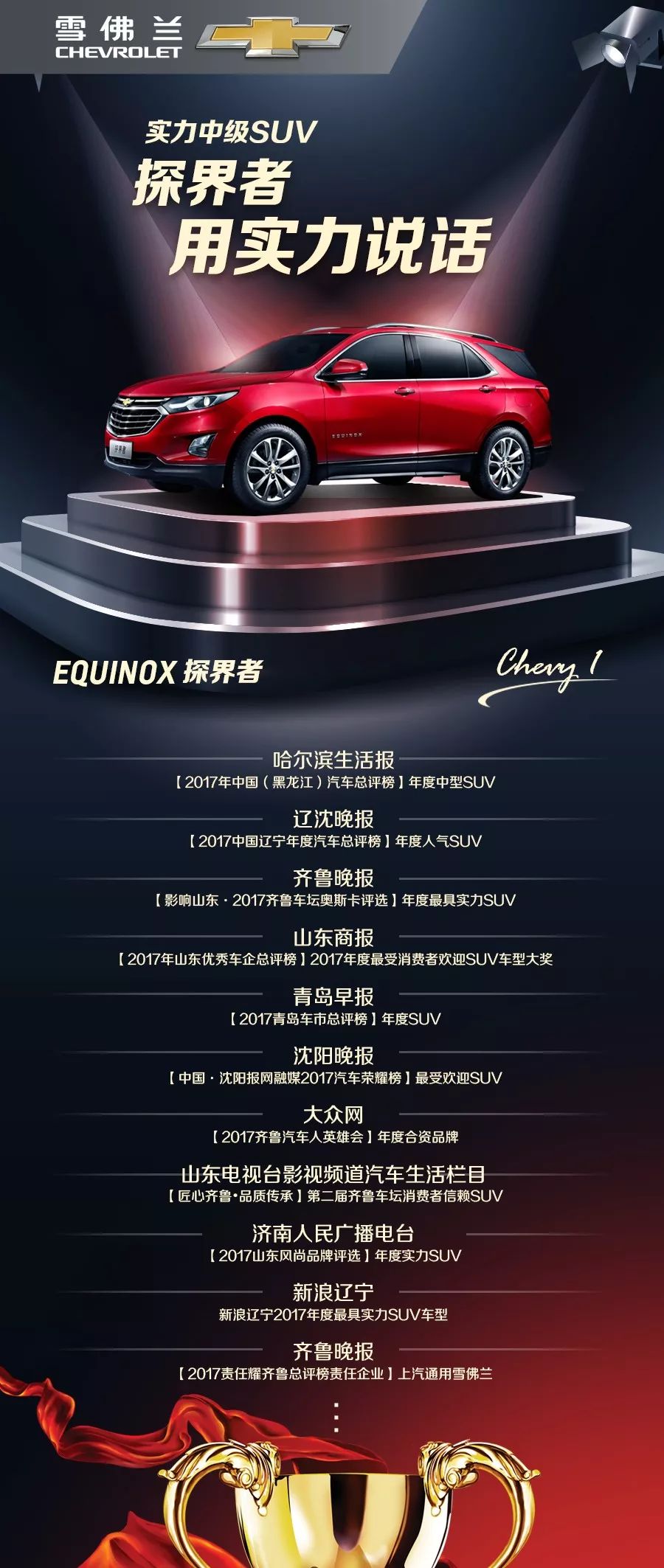 2017年,雪佛兰深化“品牌、安全、科技、质量”的品牌印象。SUV探界者用实力说话,在北方四省席卷奖项无数。