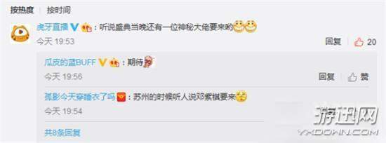 \u00A0 \u00A0虎牙直播年度盛典即将开启,届时将有很多直播大佬出席盛会,官博虎娘也在评论中偷偷向网友爆料盛典当晚会有神秘大佬到场,而这个神秘大佬引起网友们的激烈讨论。