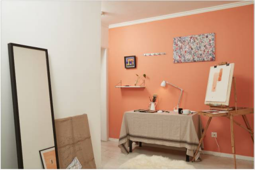 Jack是从美国留学回来的,学习画画的他回国后住在爸妈为他准备的两室一厅的房子里,看着破旧单一的墙面很不满意,于是,他找到立邦刷新服务重新翻新一下墙面。根据家具摆设,立邦刷新服务推荐Jack选择橙黄色的墙面颜色,橙黄色在大自然里最能体现自然的气息,让他在画画的时候有更多的灵感。不过,房间并不是完全的橙黄,在细节位置会选择白墙来中和室内太多的橙黄。