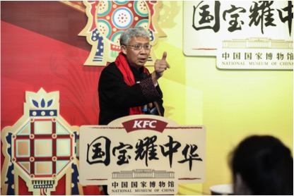 当天,肯德基组建了一队高颜值、高双商、且在十七件国宝相关艺术领域都有出色表现的“高能国宝少年团”,与来自全国的肯德基WOW会员一同来到国家博物馆,成为这十七件国宝与肯德基牵手的见证者。在国家博物馆大厅位置的屏幕上,十七件国宝之一的《明宪宗元宵行乐图》“活”了起来。手提灯笼的小童垂髫微晃,杂耍艺人身姿灵活,每一个人物 “跃出纸上”,玲珑生动。如果侧耳细听,货郎的吆喝声、喜庆的鼓乐声、杂技场外围观人群的喝彩声忽远忽近,声声悦耳。这些明朝民众喜闻乐见的场景,跨越时间与地域,重现在大家眼前,向所有人诉说着当年那个元宵节的欢乐。 之后,他们来到肯德基前门店,近距离感受了北京肯德基“孝端皇后九龙九凤冠”主题店,并在店内听中国民生研究院特约研究员、《百家讲坛》著名主讲人纪连海先生分享了“孝端皇后九龙九凤冠”前世今生的动人故事。