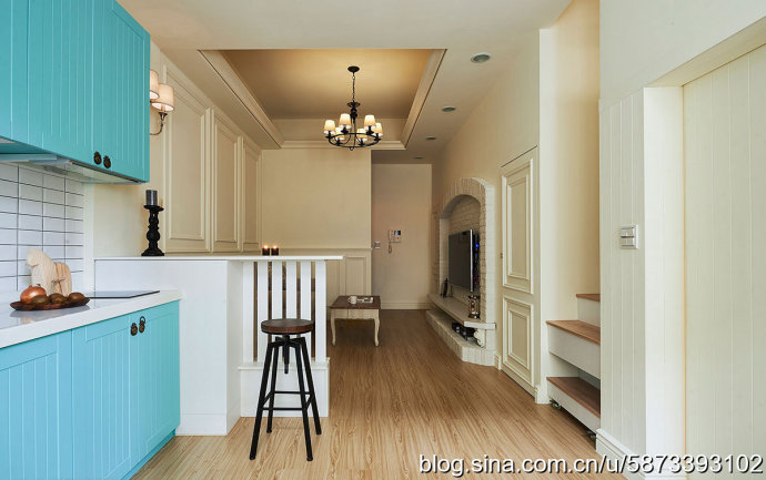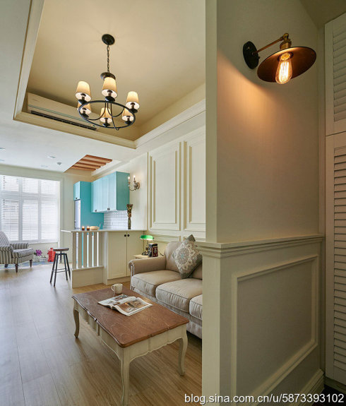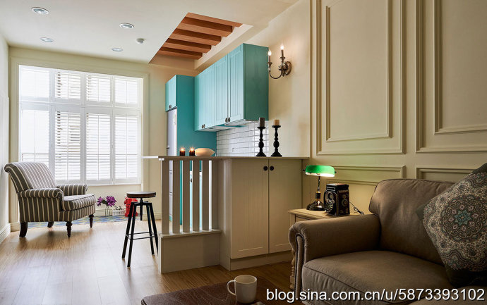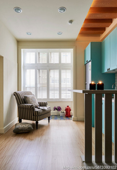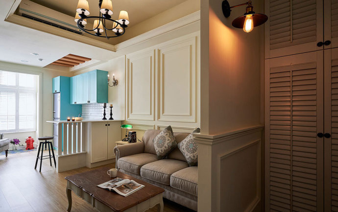 很多人觉得既然有挑高条件,只要夹层多些面积就是赚到,实际上可能造成反效果。过多的夹层看似争取到空间,但反而因为每一个空间又小又暗又压迫,久了让你根本不想待在那里,结果成了堆积杂物的储藏室。本案原先的厨房区,正是以夹层一分为二,不仅上下都狭窄,采光更难以延伸到客厅。张芷融设计师先将格局退回原点,把经常活动的客厅、餐厅、小厨房打通,让光线进到家中的每一个角落,而屋主向往的乡村风格元素也从玄关就开始营造,让工作繁忙的屋主一回到家,就能感受温暖又赏心悦目的生活氛围。