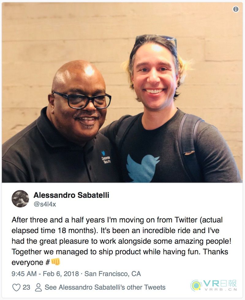 Sabatelli 于 2016 年 6 月离开一家由他领导的专注带来音乐 VR 体验的虚拟现实创业公司,之后 加入 Twitter。他此前在苹果担任设计师。