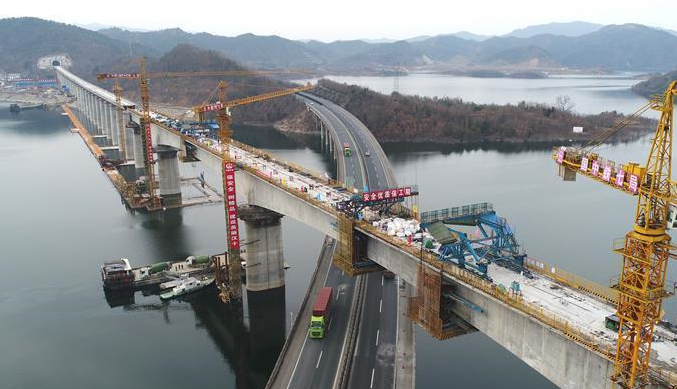汉十高铁浪河特大桥跨高速连续梁合拢 这是2月7日拍摄的跨丹江口水库和G70福银高速的浪河特大桥连续梁施工现场。当日,位于湖北省十堰市境内的汉十高... 【详细】 强图打榜 2018-02-08 07:35:46