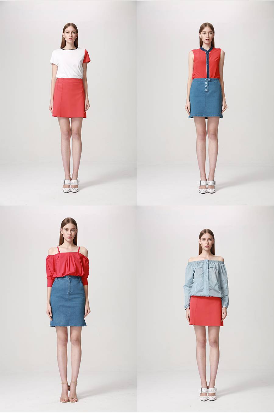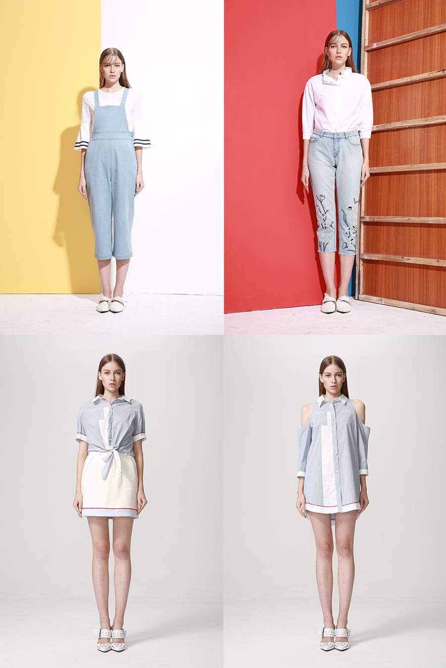 esons女装 2017 Summer分为六大系列,第一系列繁复极简「After Fan minimalist」以复古运动为主题,运用牛仔蓝、白色、大红色互相搭配,勾勒简单的点线面组合。极简和繁复主义的配对令人意外兴奋,带来出人意料的款式,将多元风格与传统经典无缝融合。
