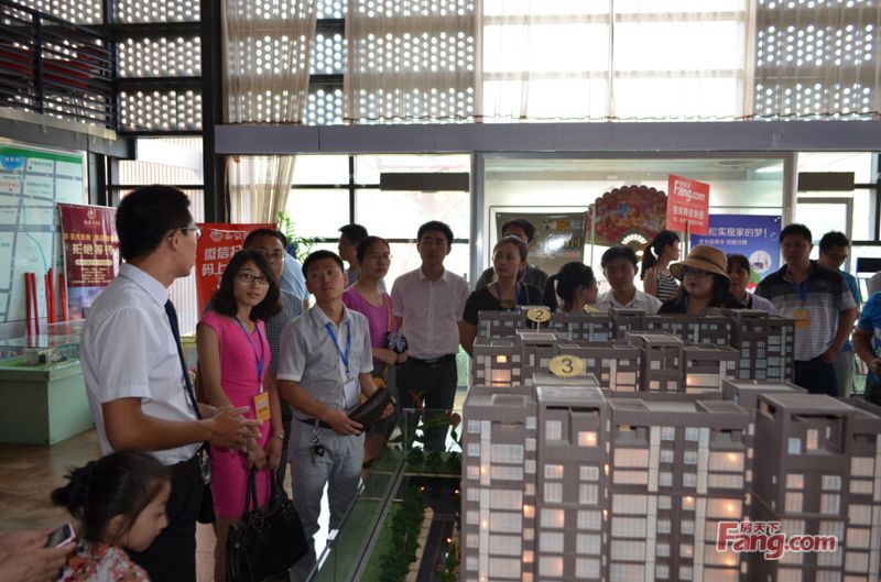 7月27日,泰安房天下大型看房团活动圆满落幕。在这次看的八个楼盘项目里,东部刚需盘泰豪名城吸引了众多看房团友的注意。售楼中心人头攒动,有刚需置业需求的团友仔细听着置业顾问的介绍,不时询问几句。工作人员细心为团友分析周边房源,做性价对比,贴心服务获购房者的赞许。