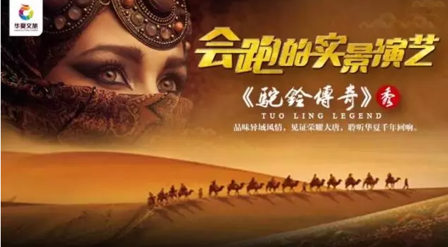 会跑的实景演艺《驼铃传奇》秀,以“一带一路”为主线,追寻驼队丝绸之路上的踪迹,深入挖掘大唐传统文化。