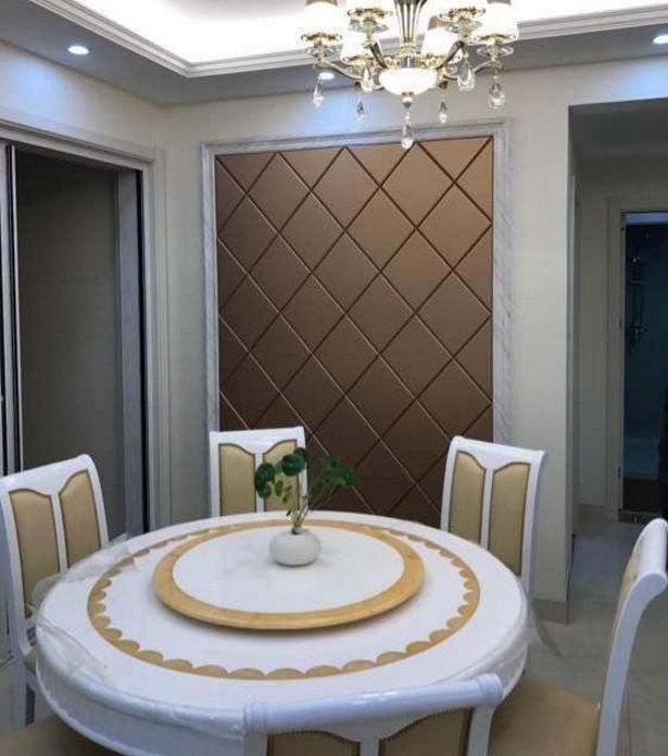 餐厅,圆形的大餐桌简单实用还有个好的寓意,代表着一家人团团圆圆的。餐厅墙面上也做了软包设计,好看很满意