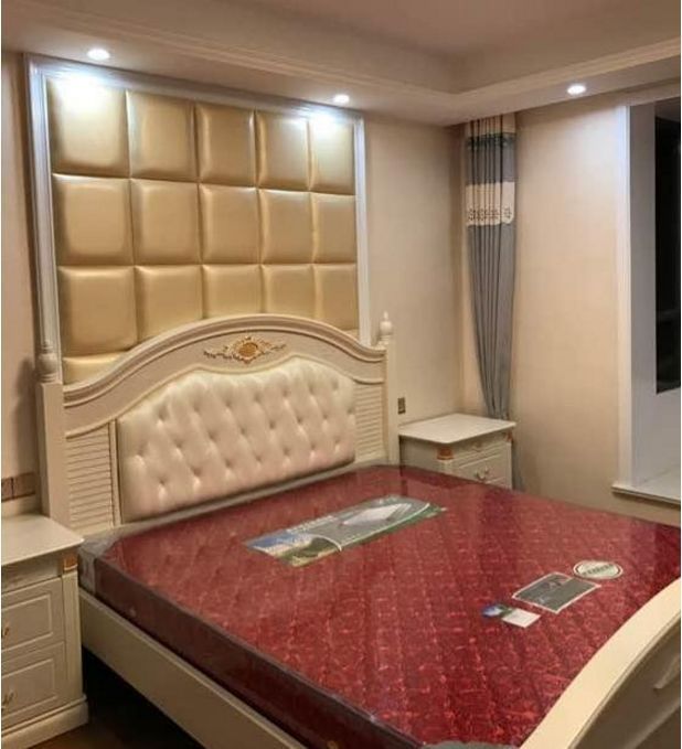 卧房,看来业主是相当的喜欢墙面软包设计,看房间床头又是软包设计,雍容大气。在搭配上米白的整套家居简单舒适完美。