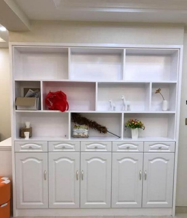 餐边柜,在餐桌的对面,刚好用来收纳满足收纳需求。摆放装饰都是相当赞的