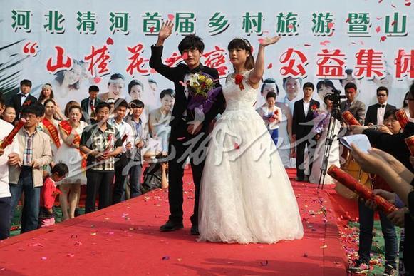 - 2015年5月4日走上T台5月1日,清河县举办首届乡村旅游暨山楂花节“山楂花之恋”公益集体婚礼,20对青年恋人在该县马屯万亩山楂旅游观光景区内,在令人心旷神怡的鲜花簇拥之下,伴着优雅的婚礼进行曲成功牵手,步入了婚姻的殿堂。燕赵都市网驻邢台记者张会武通讯员裴海潮摄影报道花前留影相关新闻2015-03-2920:35:3029日,在位于合肥市庐阳区三国新城遗址公园举行的“大湖名城·爱满合肥”中国合肥市第二届青年集体婚礼...