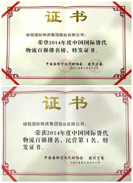 - 2015年8月24日2015年8月21日,由中国国际货运代理协会和国际商报社主办的2015年中国国际货代物流发展论坛暨2014年度货代物流百强排名揭榜仪式在西安召开,中国国际货运代理协会副会长、锦程国际物流集团总裁李枫携锦程物流服务公司CEO邓志山出席会议。会上,中国国际货运代理协会发布了2014年中国货代物流行业发展报告,同时揭榜2014年中国货代物流百强企业名单,锦程国际物流集团连续十一年蝉联中国国际货代物流百强...