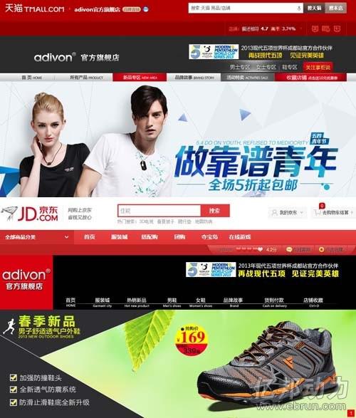 - 2013年5月5日5月5日消息,随着国产运动品牌“阿迪王”与国际运动品牌阿迪达斯长达5年的侵权诉讼案和解,“阿迪王”中文商标及LOGO最终无偿转让阿迪达斯。与此同时,其线上销售的店铺也于近期一律终止使用“阿迪王”字样的品牌名称,以及与阿迪达斯极为相近的三角形LOGO。亿邦动力网分别查看“阿迪王”天猫官方旗舰店、京东官方旗舰店等网络销售渠道,其品牌仅以英文标识“adivon”出现,虽然出售的部分商品上仍有三角LOGO...