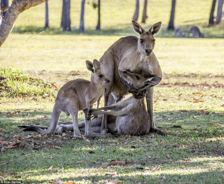 - 2016年1月14日人之将死,其言也善。其实动物们在面临生死离别的时候,同样有着复杂的深感情,足可感天动地。据英国《每日邮报》报道,在澳大利亚昆士兰弗雷泽岛的一片原始深林里,EvanSwitzer见到了令人心碎的一幕:一只雌性袋鼠不幸死去,走之前对自己的宝宝无限的不舍。当时,雄性袋鼠一直试图将这只雌性袋鼠扶起来,似乎是想看看她到底怎么了,而后者已经失去了站立的力气,就躺在丈夫的怀里。她伸出两只前足,抚摸着自己的孩子,...