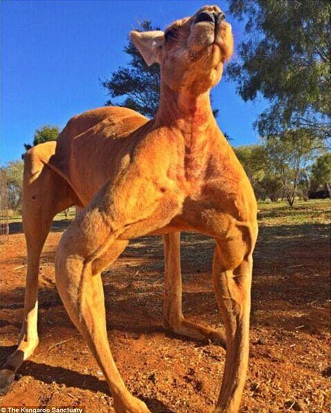 - 2016年2月7日澳洲有一只叫Roger的网红袋鼠特别火,经常能登上各大新闻。全身肌肉爆炸,堪比袋鼠界的施瓦星格。这货站起来有2米多高,体重89公斤,比一般的袋鼠都要大只。最引人注目的还是这一身壮硕的肌肉,其它袋鼠也是都不敢惹它。10年前,Roger刚出生没多久它妈妈就死了,避难所的一个哥们在路边发现了它,从此Roger就跟着它的新老爹生活在一起。刚进保护区那会,这货的画风还是这样的,柔弱的小眼神,可怜兮兮的模样。...