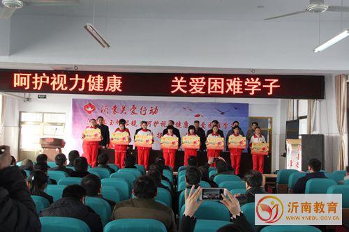 - 2016年1月14日2016年1月14日上午,沂蒙关爱行动,姜玉坤眼镜“呵护视力健康,关爱困难学子”眼镜捐赠仪式,在沂南四中学校五楼会议室举行。仪式由县关工委副主任贺法贵主持;四中王家恩校长致辞;姜玉坤眼镜店经理介绍了此次活动的目的意义,并向全县千余名困难学生和品学兼优学生捐献了眼镜;县关工委主任满玉成同志对小丁眼镜店经理丁海银进行了捐赠颁奖;学生代表张乐源发言,对姜玉坤眼镜关爱学生的义举表示感谢;最后县关工委王玉法...